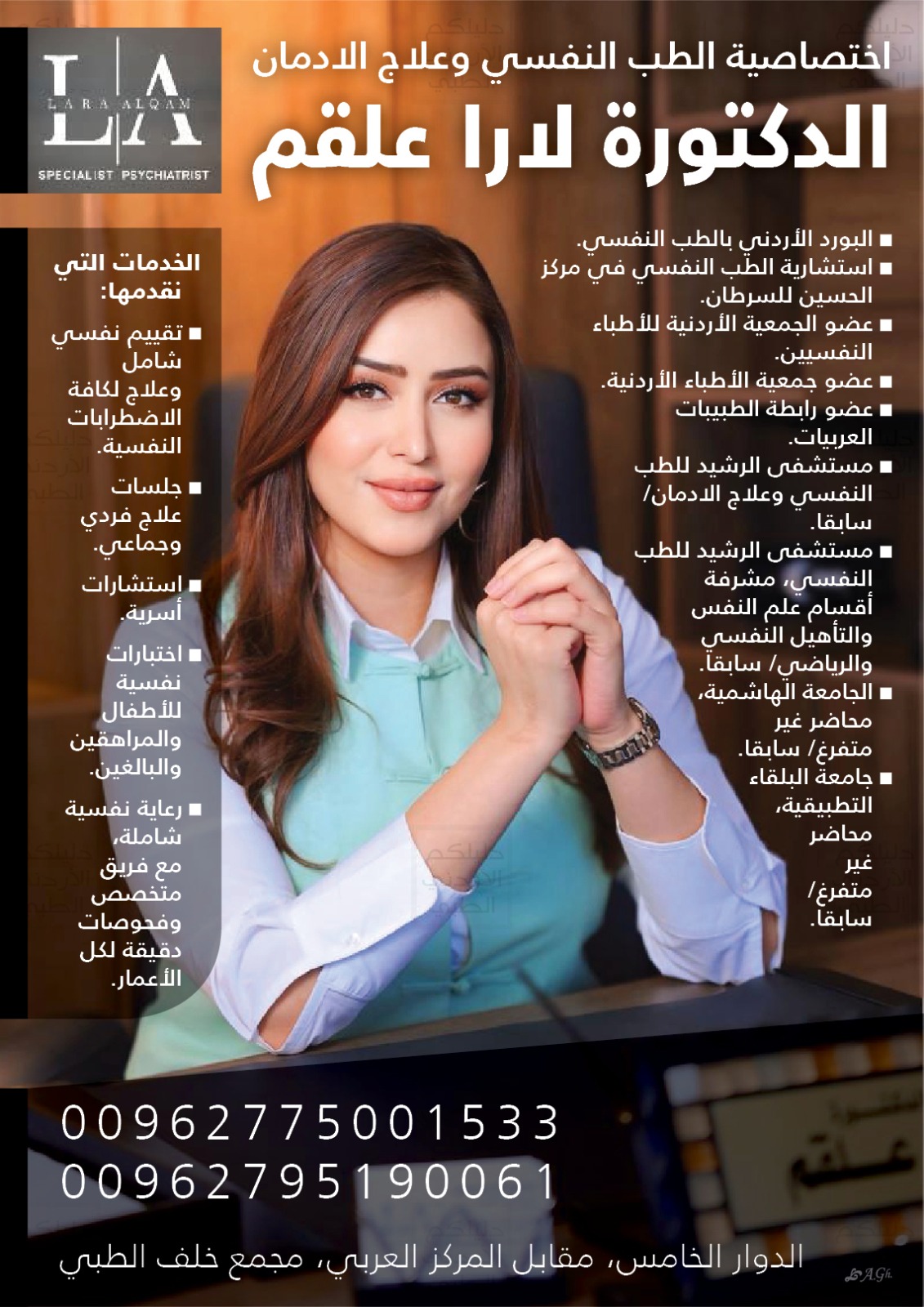 استشارية الطب النفسي في مركز الحسين للسرطان